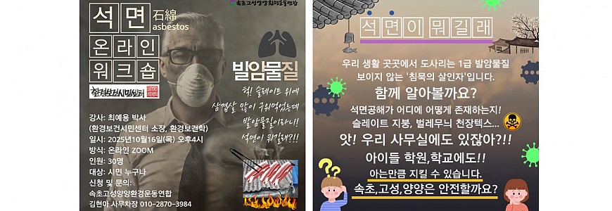 16목 오후4, <환경이아프면 몸도아프다> 온라인워크숍1(석면)