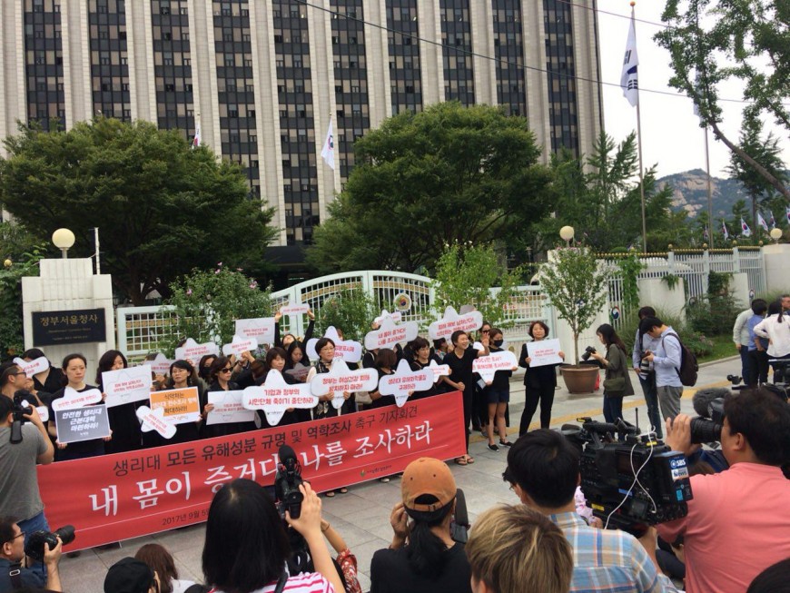 독성생리대 사건 관련 정부의 역학조사를 촉구하는 기자회견에 환경보건시민센터도 같이 합니다.