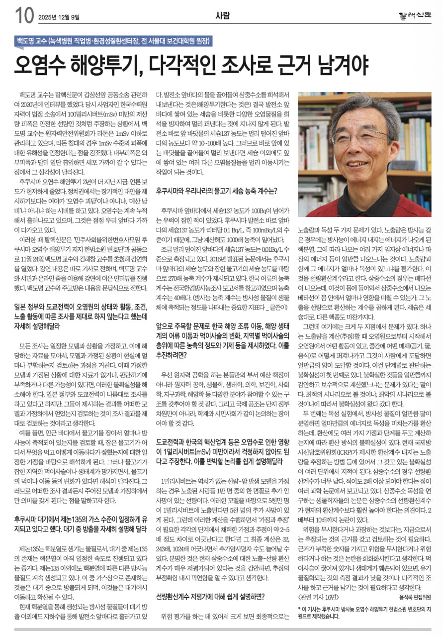 [탤핵신문] 오염수 해양투기, 다각적인 조사로 근거 남겨야