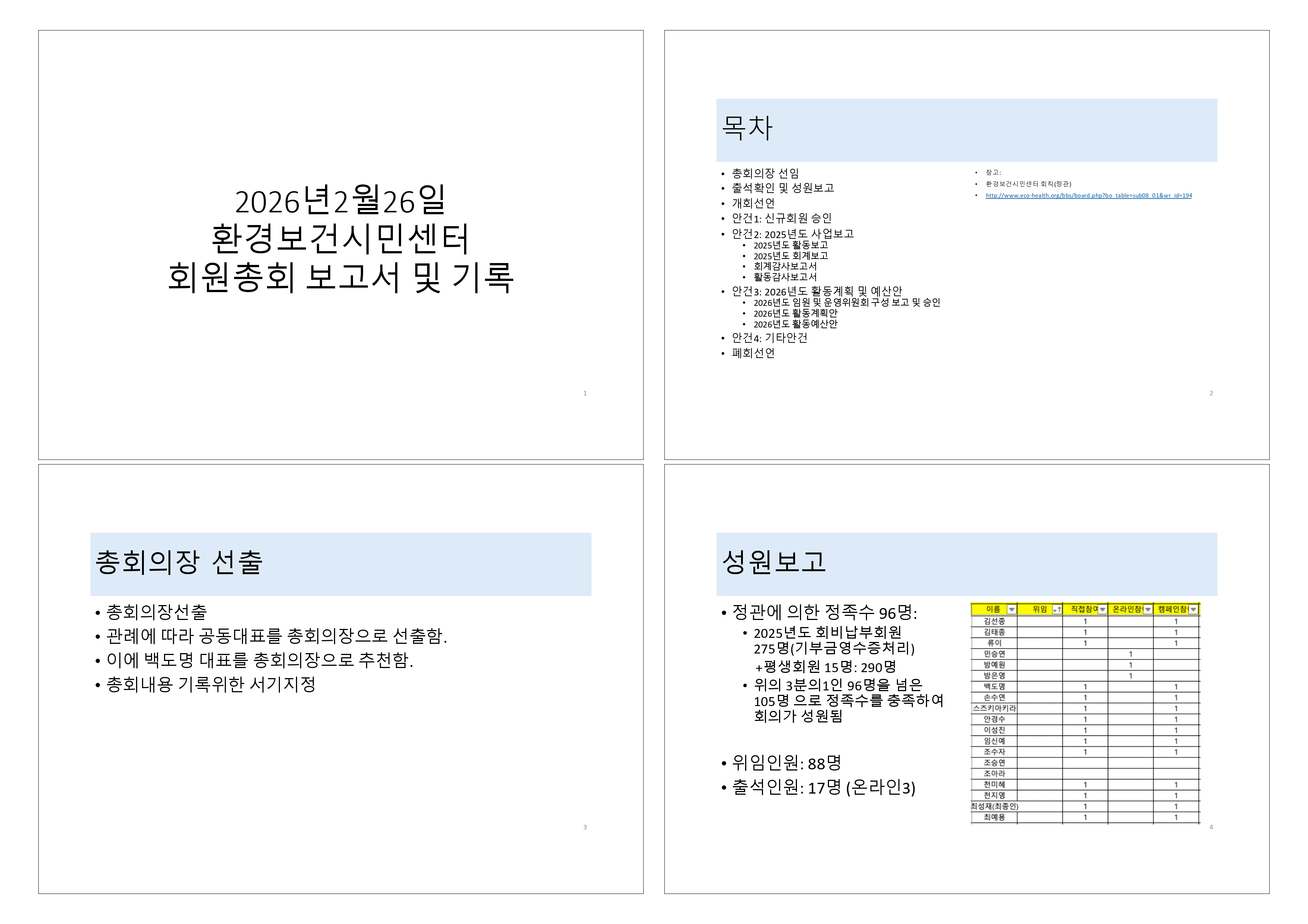2026년도 환경보건시민센터 회원총회를 아래와 같이 온오프라인으로 진행했습니다.