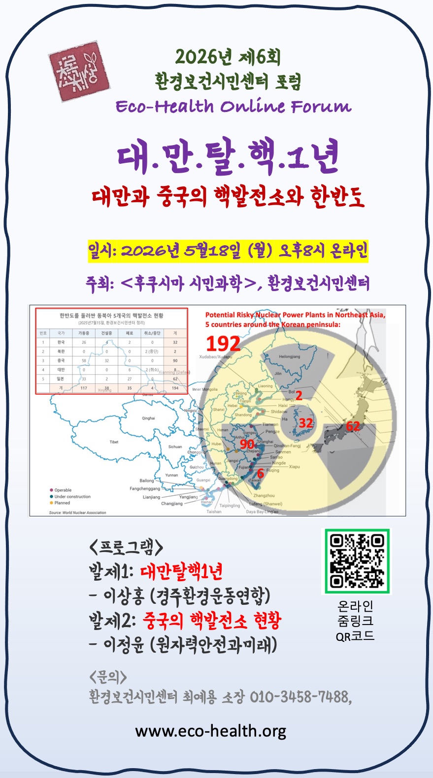 [포럼공지] 5월18일 대만탈핵1년, 대만과 중국의 핵발전소와 한반도 (온라인)
