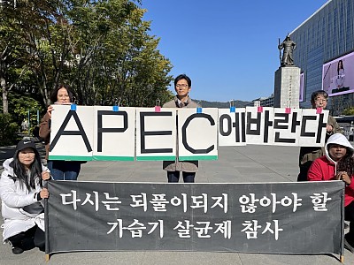 기자회견 내용 및 메시지는 아래 클릭하세요http://www.eco-health.org/bbs/board.php?bo_table=sub02_02&wr_id=13402025 APEC 한국 경주회의에 바란다시민사회 시리즈 캠페인을 시작하며2025 APEC 한국 경주회의를 계기로아태 시민사회 공동체운동을 꿈꾸어본다긴 연휴가 지나고 맞는 10월 중순 15일…