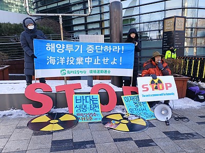 2026년 1월13일 한일정상회담 첫날, 서울 종로구 일본대사관앞에서 열린 기자회견 사진입니다.2026년 1월12일 한일 정상회담을 하루 앞두고 서울 종로구 일본대사관앞에서 후쿠시마 핵폐수 해양투기 중단을 요구하는 기자회견이 열렸습니다.